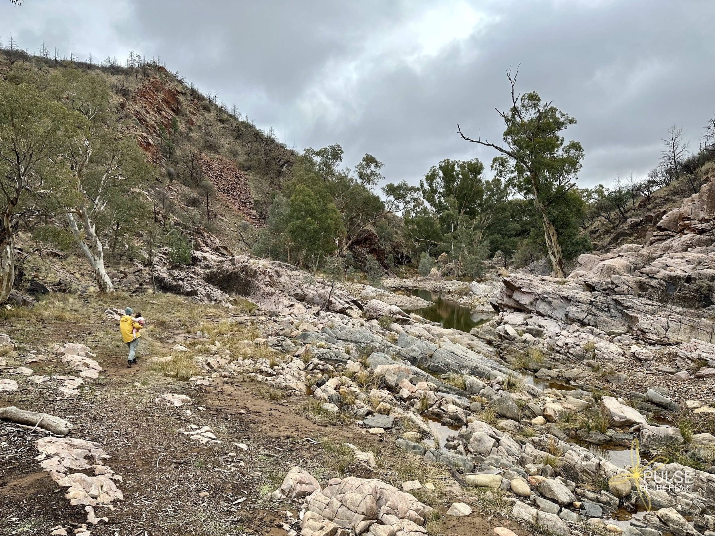 Next stop, Illinawortina Creek and Bolla Bollana Spring. It’s a good spot to let your kid play amongst the rocks of the creek bed without too many hazards. A walk down the creek bed ends in a pretty waterhole.Take care around the water and use touch-supervision to ensure young kids don’t take an unexpected bath! We carried our toddler up to the waterhole as there were puddles and some soft ground.